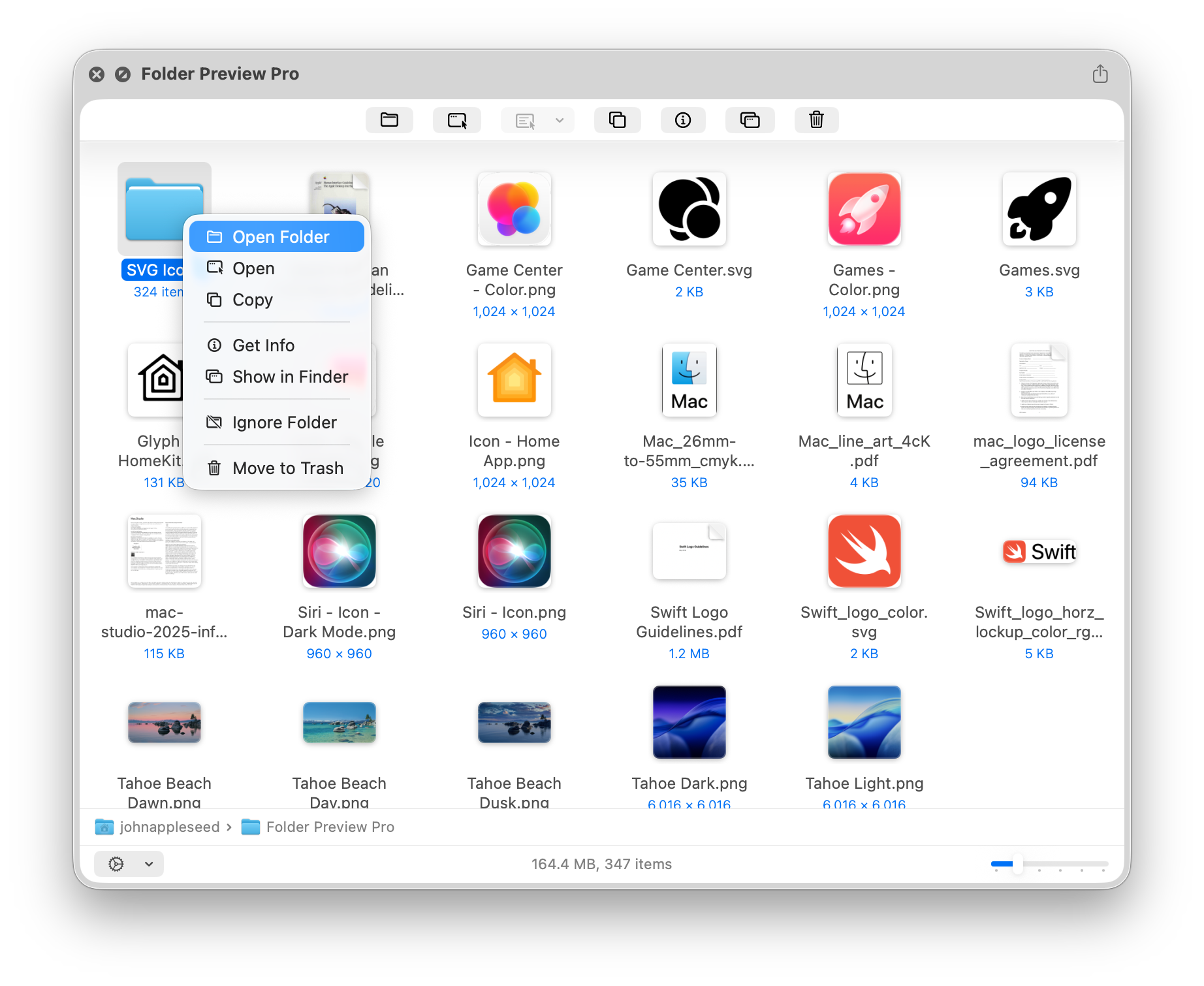 Folder Preview Pro brings Quick Look to your folders with thumbnails for all file types that Finder supports.